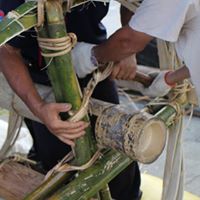 今天的飯棧製作階段最主要是加強固定中間的支撐力,耆老們在動作時,動作必須是一致的,以避免鬆緊不一,他們在竹子尾端開個小口以便固定在做好的圓箍上。固定用的藤,利用木棍使力絞緊加以固定;聽完小編的講解不知大家是否清楚呢??肯定不夠清楚吧!!所以快來參加吧!!