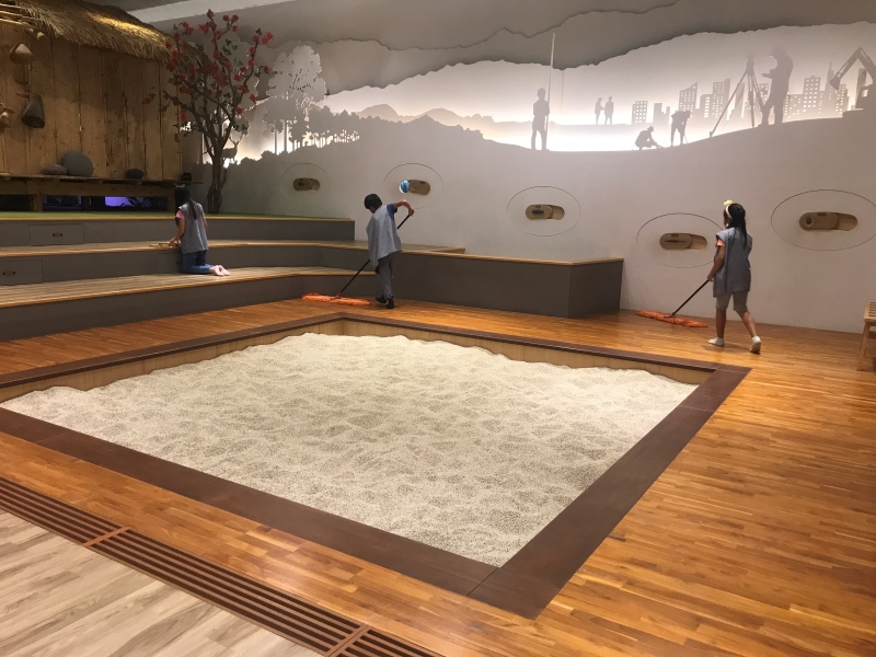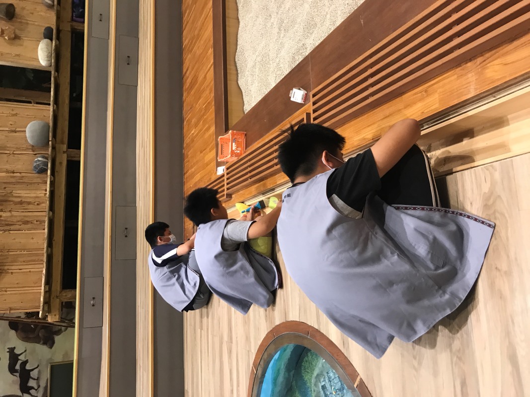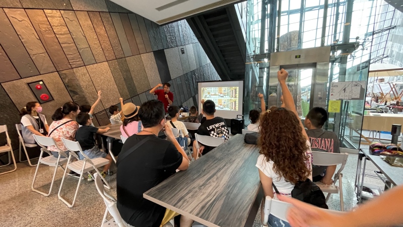 本次活動也邀請「蘭博考古偵探團活動」的學員回到蘭博來當一日志工,小志工們的年紀平均在10-12歲,服務方式為跟著館員一同上工,在兒童考古探索廳內學習引導遊客進場、場地清潔、體驗教具歸位等;而在考古快閃小講堂裡,小志工們學習持拿文物讓遊客觀看、協助遊客報名DIY體驗活動等。