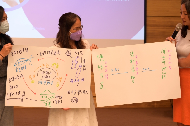 今年度已完成5處示範場域招募,由本館挑選五大主題場域進行第一階段示範場域規劃,五大主題分別為:海洋文化、海洋遊憩、海洋教育、海洋保育及海洋生態,並以「海」為主軸完成海洋街角館統一識別設計,以及5處示範場域的空間規劃設計。
