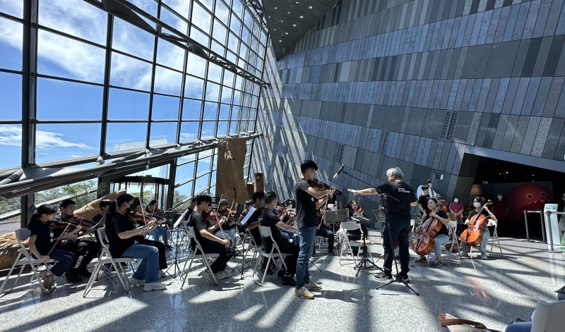 為了更加發揮博物館建築與音樂的可能性,蘭陽博物館特別開放遊客大廳,接受來自宜蘭在地以及全國各地表演藝術團隊展現精彩音樂演出,讓蘭陽博物館成為一座坐落於頭城烏石港舊址的地景音樂廳!